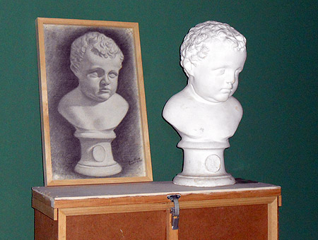 Va fer, això sí, dibuixos de motlles de guix i escaiola a la manera acadèmica i que es poden contemplar en aquesta exposició. Aquests dibuixos han estat gelosament guardats durant més de setanta anys per ell.