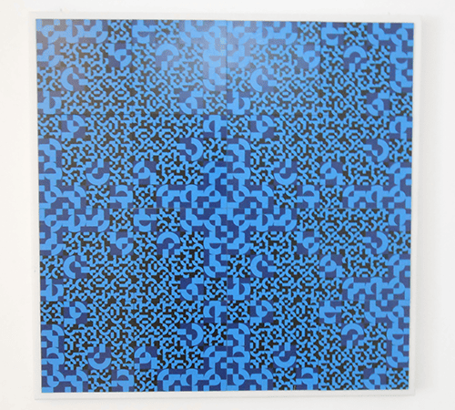 Aquesta obra pertany al període geomètric (1972-1975) de l'autor. L'any 1972 G.H. Arriba a Eivissa, on s'estableix des d'aleshores. En aquest període empra colors plans en combinacions binàries i retícules formals de tipus sempre geomètric. La peça adquirida per a les col·leccions del museu és, a més, imantable, condició aquesta que permet jugar variant el dibuix, ja que el pla està dividit en setze plaques de 19 x 19 cm. Aquesta mobilitat consubstancial permet deduir que l'autor no sols s'adhereix en aquella època a l'abstracció geomètrica d'efectes òptics, sinó també al cinetisme. Naturalment perquè aquesta obra es “mogui” cal l'impuls de l'acció manual. La idea subjacent de laberint manipulable pretén la implicació de l'espectador en un procés que va més enllà d'allò purament contemplatiu, buscant una interacció còmplice. La utilització del binomi cromàtic com a recurs capaç de generar moviment visual té els seus antecedents en la dècada dels seixanta on apareixen exemples d'aqueixa dialèctica de contrast binari (vegeu Double Speed (1969) de Larry Poons o Camps magnètics (1969) de Takis). En el caso de Herreyns l'elección de dos tons de blau ens permet comprovar la subtilesa del seu vocabulari formal.