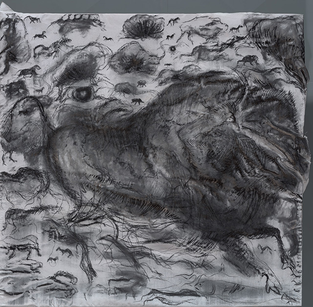 Des dels seus estudis de Mallorca, París i als seus tallers, treballa inspirant-se en els seus viatges i en la seua terra i mar, així com en les cultures antigues i en les tradicions. En aquesta ocasió, les seues pintures ens remeten a les pintures rupestres de coves com ara Lascaux, Altamira o Chauvet, que Barceló ha tingut ocasió de visitar. Barceló ens fa pensar i sentir, amb els seus darrers treballs, en el sentit màgic originari de les pintures rupestres, treballant els llenços amb textures i volums, imitant les superfícies rocoses de les coves i la manera com es van utilitzar els accidents i colors de les parets. La paleta d'aquestes obres és austera, dominen blancs, negres i ocres, i alhora desprèn valors sensuals, rics i propers. Així per exemple a les pintures de caps de mamífers (càprids, bòvids i altres) sentim l'emoció dels relleus rocosos que van servir de suport a aquelles antigues pintures rituals i l'hàlit que ho va inspirar. Les pintures de Chauvet, les que es creuen més antigues daten d’entre 35.000 i 22.000 anys abans de Crist. I ens sorprenem en reconèixer-nos antropològicament “primitius”, fascinats pels animals totèmics o sagrats; mamut, bisó, camell o toro, que són símbols del poder tel·lúric, de la força creadora i dels déus primitius de la nostra cultura mediterrània.
